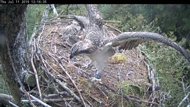 Wing-flapping exercises The main nest osprey chicks are eight weeks old this week! This week, the fortunes of the young male osprey have turned about; he has been the underdog of the brood for much…